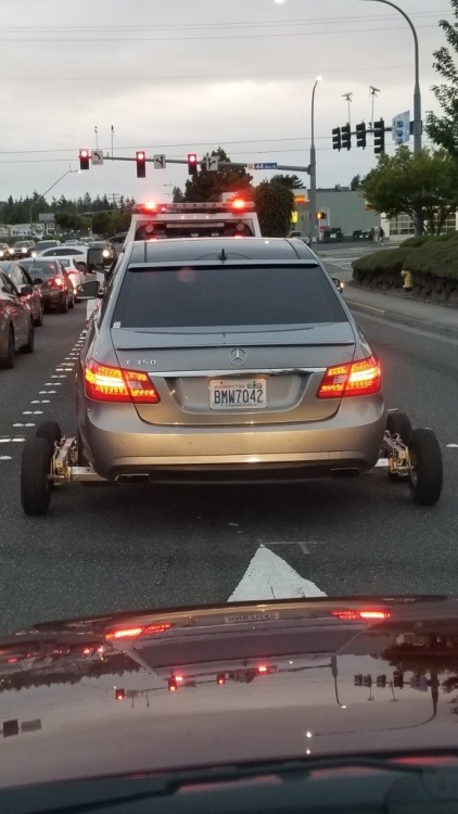 Today has been a funny day, as posted above a running just fine old oldsmobile station wagon and saw 3 mercedes all being towed. Then on the way home from the gym this was in front of me at the light! Total of 4 for the day. WOW What happened to the best or nothing at all slogan?