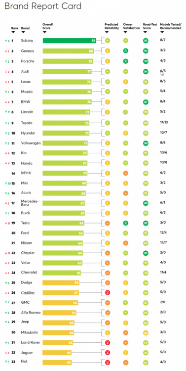 Tesla Model 3 "Recommended" Rating Rescinded by Consumer ReportsG. David Felt replied to Drew Dowdell's topic in Tesla CR just released their report of where all the auto makers stand in their Brand Report Card. Pretty Interesting, some I agree with, others I clearly do not. https://www.consumerreports.org/cars-driving/which-car-brands-make-the-best-vehicles/
