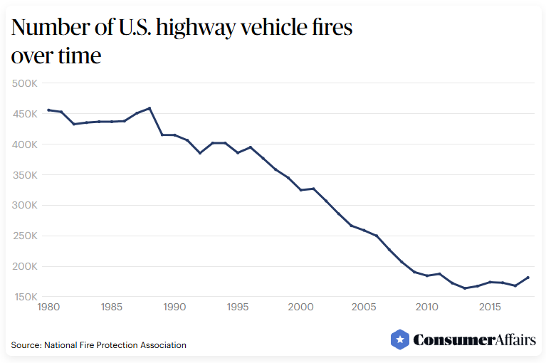 1. Seems the most I can find is the 24 investigations here of which only two are electrical and the rest are petrol. Vehicle Fire - Publication Topic - CrashStats - NHTSA - DOT Sadly it would seem many news groups have got caught up in the same AutoInsuranceEZ reporting that is not true. Government data show gasoline vehicles are up to 100x more prone to fires than EVs | Electrek This story does seem to have a broader search of source material for vehicle fires by type and yet they also quote the same flawed AutoInsuranceEZ report that quotes NTSB. Fire risks of hybrid, EV and ICE cars - Pinfa Came across this as the most current 2025 story where they do not use the fake info from AutoInsuranceEZ, but have actually researched this better. Electric Car Fire Statistics 2025 | ConsumerAffairs® Seems here they show EV fires at .004% and Gas/Diesel fires at .08% NFPA does not keep a detailed list of vehicle fires by type but over all and that shows a huge drop since the 1980's.