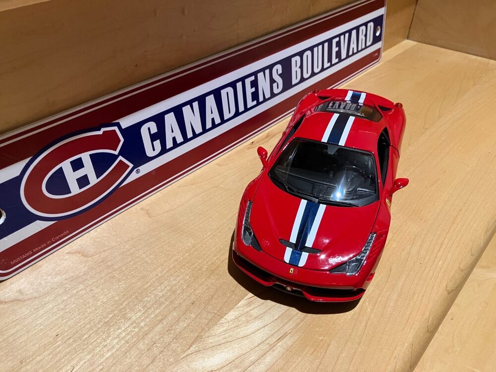 Im working on a Montreal and Canada themed area in my man cave. Im starting it off with the Canadiens. My post of the Ferrari/Habs comparison in the beautiful cars thread inspired me. NO products from the usa will be bought or used. China however is very acceptable. The Ferrari is from Bburago scale 1/18. Made in China. Owned by Chinese company May Cheong Group.