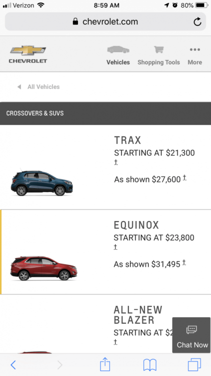 Not disagreeing with your assessment. It’s more about how it was being marketed and sold. One mention in a order guide that most people don’t use doesn’t change the fact that it was never marketed as a CUV. GM flubbed the marketing completely, whether it be because of the design (which is a valid complaint for most folks), the price, or any other number of reasons. None of this changes what I have brought up to the resident anti-EV troll. When looking for a crossover or SUV on Chevrolet.com, here are your options. Funny how there is no Bolt on there.