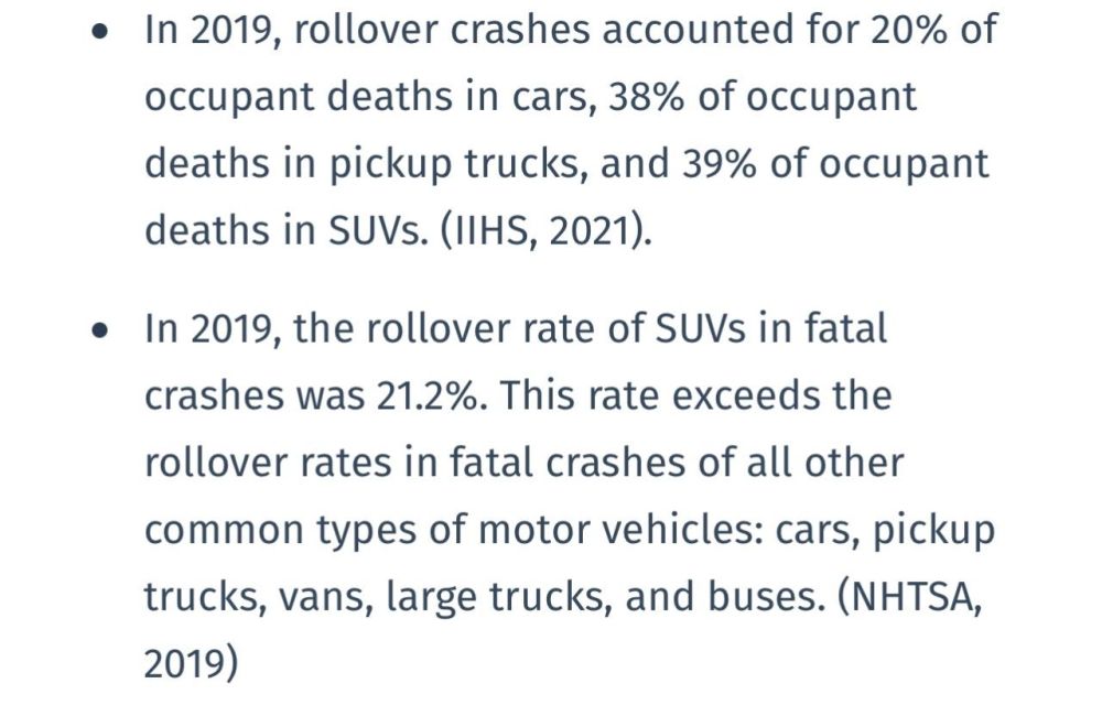 Well you are right here questioning the validity by throwing out made up numbers (by your own admission) so there’s that. Let's start here. https://www.hotcars.com/modern-pickups-and-suvs-you-didnt-know-were-rollover-hazards/amp/ -