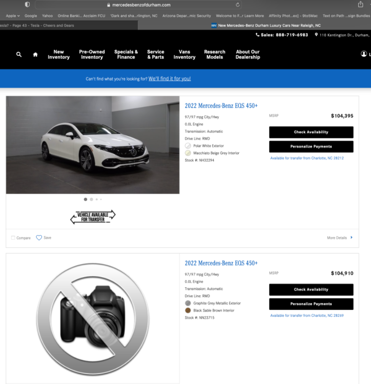 Example number 3. You want more examples of your about face prior to Mercedes officially joining the EV game? Funny. I strolled through one of their lots in Glendale, AZ (Arrowhead Mercedes) and found vans parked next to E-Class and S-Class sedans. They are not as "exclusive as their fans make them out to be. Furthermore, David has a point. They more compliance autos than ever before and love pulling that visual slight of hand with even their upper end offerings like the EQS (see the base model dash but just don't look for it on MBs website since they only show the hyper screen models). Are they still a luxury car company? Sure, in the technical sense. Are they are "exclusive" as they once were? Hell no.