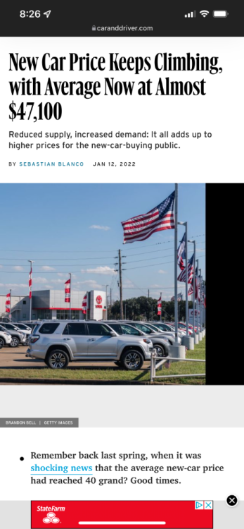 Maybe it’s the fact that everything else, including all ICE cars have gone up as well. This article only confirms that Rivian is facing the same issues as everyone else. Sorry but this is nothing more than a clickbait thread to try and single out an EV maker while ignoring the world around it that affected the change in question here. Just going to leave this right here is bid this thread farewell. https://www.caranddriver.com/news/a38748092/new-car-average-sale-prices-47100/