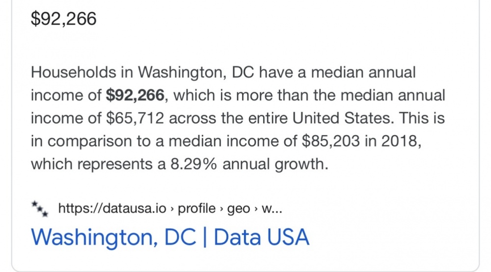 Caught a glimpse of this across from my shop today. Something about that baby metallic blue color just belongs on just about ANYthing Cadillac. Not sure on the year but I'm guessing a 67-68 year model. I'm sure @balthazar knows better than I do on this one. Regardless of the year though, just a super sharp ride. And in either situation, starting at $45K for THAT job is not enough when DC median income (on either scale) is 30% HIGHER than national average. I am honestly baffled that this has to be explained. The amount of money made is relatively to the overall cost of living where you live. $45K will go a lot further in the middle nowhere Kansas but not so much anywhere in or even around the beltway. It's not even close honestly. Those guys should be making considerably more given the nature of the job alone, screw where they live. That's my end point here.