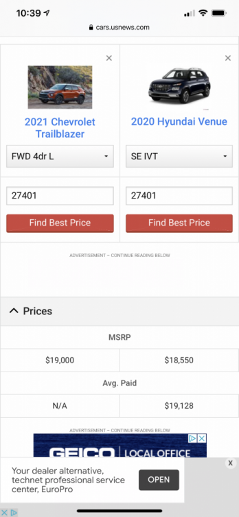 Not that this part matters (only what I posted at the bottom here), but so damn what? The Hyundai dealership nearest me has ONE base model Venue and it is cheap looking on every front. You talk about apples to oranges? The TB, while priced higher, looks better in every trim level (as opposed to the base model Venue I saw with its wheel covers, no wonder its “cheaper”). Like I said though, none of what you just pointed out matters because of the following below. For the last time, I quote, 22 hours ago, ocnblu said: Link please. To a domestic 2020/2021 competitor to the Venue. Yes it is, whether you want to admit it or not. Your sorry attempt at bar moving does not change this fact. Go ahead though. Go ahead and get one of the cheap ones here. I think I’d pay a little more for one that doesn’t look so “cheap”.- 77 replies