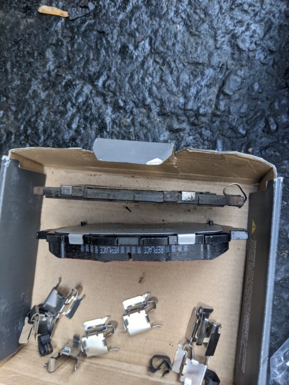 Replaced front and rear rotors and pads on my daily. Really was due as you can see from the picture. Unfortunately, rockauto sent me wrong rear pads and I discovered that when I already disassembled the rear brakes. Had to run to local auto store to pick up whatever they had. What is really unfortunate is that I bought the parts more than 30 days ago (just couldn't find time to install) and now I can't get refund for the wrong parts. I guess live and learn. (For some reason pictures posted upside down)