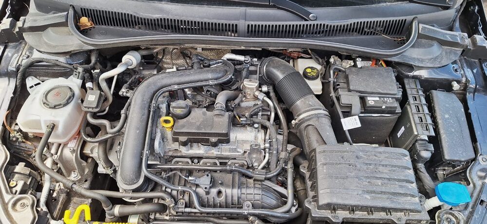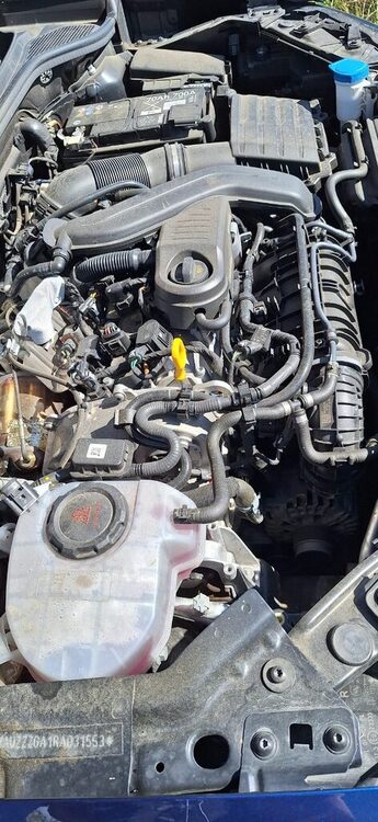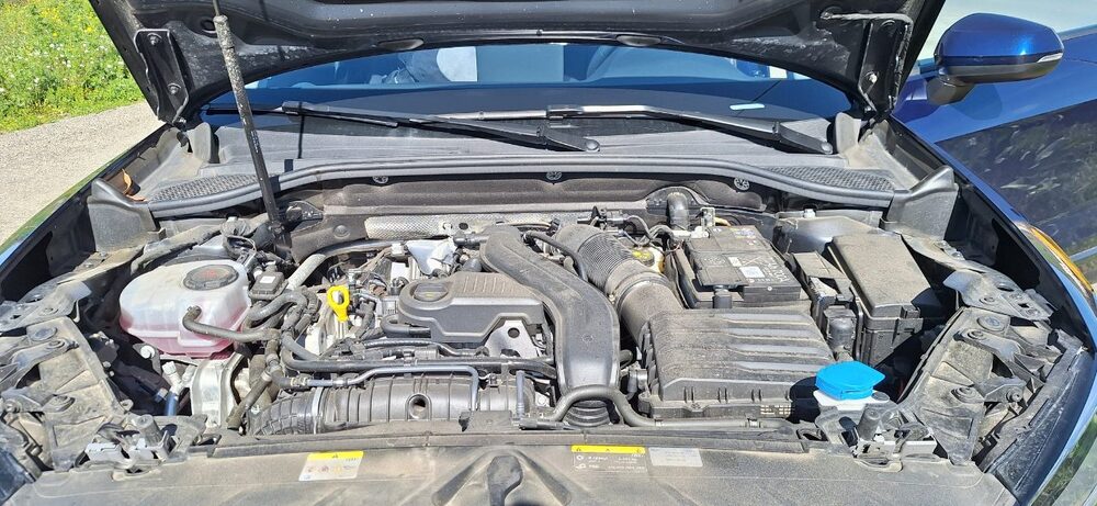 MECHANICAL PHOTOS What's different here? It may not be apparent. Once you start opening the hood, there is no need to manually place the prop rod to keep the hood open. This is to be expected for a more premium car line, whereas VW-SEAT-Skoda tend to have prop rods that you slot into place. This is a transverse view of the engine bay where there are 4 cylinders at work under the hood, and which are assisted by a turbocharger as the plumbing would indicate. - - - - - END OF PHOTOS