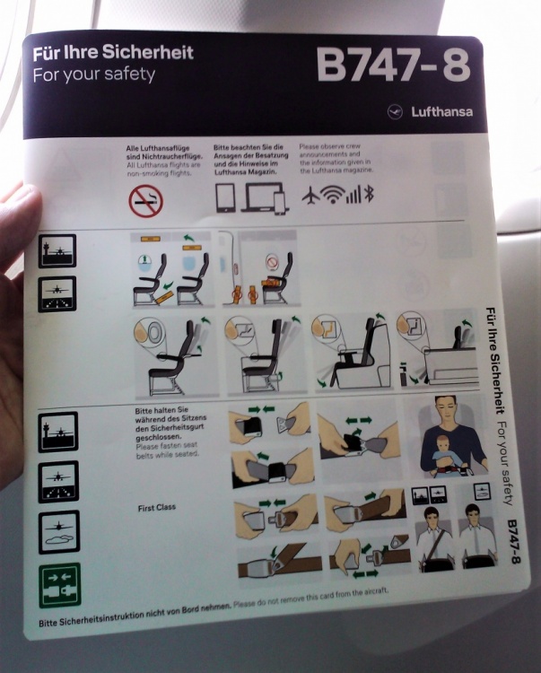 This would be the ride across the pond to New York, parked at the gate at Frankfurt airport, Lufthansa's home base. Kudos to Lufthansa for being the launch customer for the B 747-8i. I applaud people who were brave enough to take German in high school or college. They just join words together to make mega-words with 20 letters in them. And to think of all those poor immigrants from Southern Europe and the Middle East living in Germany who have to learn them. For example, an "auditor" is a "wirtschaftsprufer" (with 2 dots over the u) in their lingo.