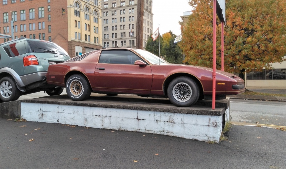 8. And here's one more. This is the '82 to '8? Pontiac Firebird. It didn't say how much they wanted. Or if it ran. Wasn't this platform the most troubled of any generation of Firebird? I know that a rare few came with an Iron Duke 4 and that some came with a 2.8 V6? That was nothing to brag about. However, I definitely took notice of this nicely maintained '80s Firebird amidst the fall foliage. Ha. Both 4 letter B words.
