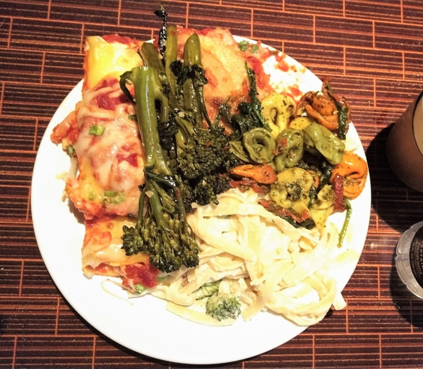 18. Here are some sightings of a different variety ... food. This morning's breakfast - omelette with feta, tomatoes, spinach, and mushrooms as well as potatoes and wheat toast My first visit to a casino lunch buffet last week where the rules have changed - table distance, paper cups instead of ceramic mugs, masked employees, and most noticeable of all ... the sign saying "Let Us Serve You," where they dish out the food cafeteria style. And this was just my Italian plate (chicken parmigiana, cannelloni, gnocchi, fettucine, and some other items). They said they had less selection than before but it looked pretty good to me. So did the price!