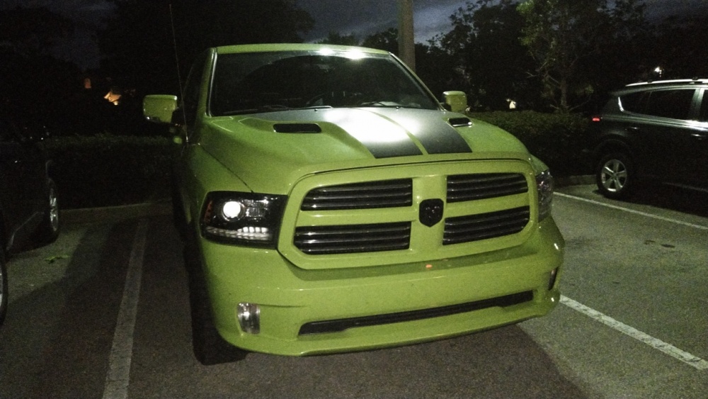 June 1st sighting ... in the evening ... boo: The owner of a LIME Ram truck would have to be marginally more "interesting" than that of a black, white, red, blue, or silver one. Or maybe not. Just a thought.