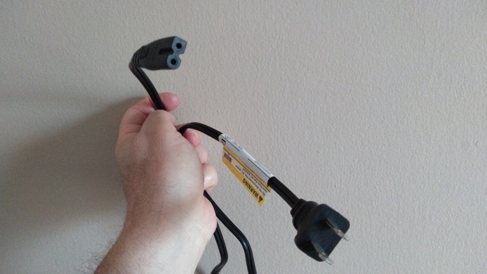 Bingo. I wouldn't have thought to look there. The key word is old. I found a boombox I have, lightly faded, and it plugs right in. I was going to throw the darn cord away. Thank you. Right, this boombox is not young.
