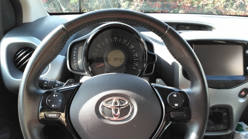 Generally speaking, I prefer not to drive a rental car in Europe unless it has an automatic transmission. That allows a person to pay more attention to the nutty or aggressive drivers than on timing the clutch in tricky situations. Now, even with an automatic transmission, I would not drive in left-hand drive countries - UK, IE, or Malta. Period. Automatics are more readily available and larger cars over there. And they cost more. That slims how many econoboxes with automatics are available as rentals. The icon on my rental reservation indicated a Smart coupe, which would have been fine for 5 days. Instead, I was given a Toyota Aygo. The tiny Toyota had almost 60,000 km (about 36,000 miles), so they weren't as fussy as they've been in the past with small dings and scratches at Italian airport rental agencies. And, while not many were noticeable, closer inspection revealed that there were quite a few of them ... and I made sure that they were noted. It was sort of cool that my rental car would be a sedan. I felt it would feel more substantial on the road than a Smart coupe. And that it would have more trunk space. Getting used to the Aygo was easy. There isn't much to set up, except maybe for the Bluetooth. There is a center instrument panel, a tidy center stack area with simple controls, and the glove box to the right. On the steering wheel were infotainment tuning adjustments and phone controls. The seating was just okay ... a little on the hard side. The rear seat was tight and only suitable for people who aren't that tall. Trunk space was extremely limited - one medium sized suitcase and one smaller bag or item. I did not bother to look at what was under the hood until later. The Aygo was sufficiently powered for everyday situations but insufficiently powered for merging and passing. It was an automatic that really, really wound out when the car was throttled ... and then shifted. It was in fact a geared automatic. The reason it wound out is because it was hooked up to a 3 cylinder engine, the first in my life I've ever driven. It didn't vibrate at idle, and you might have even assumed it was a small 4 banger. However, it sure was grainy ... grainier than most 4 cylinders in cheap cars. The automatic transmission had 3 automatic modes - R, N, and E. I couldn't find a P, for park. I guess you put it in N and apply the parking brake ... and find a level place to park. I didn't know what E stood for, but that was the setting for forward driving and automatically shifting through the gears. If you moved the shifter to the left and downward, you could move through the forward gears manually. I saw no point in using that feature. The Aygo's handling was competent and not much more than that. It held the road but it wasn't set up for aggressive driving in curves, cloverleafs, etc. Looking back, the ride of a Smart coupe was surprisingly better than one would think. The same is true here. It was just a little bit smoother and more planted than a Smart coupe, even though neither of them can soak up road imperfections all that well. I found the rear visibility to be good. It was very easy to park. Between the good visibility and the mirrors, parking in small spaces, changing lanes, and driving defensively was more possible. This is one cheap car, though. I liked the center stack, where audio controls on a touch screen and climate controls in a square-round cluster (as opposed to a horizontal strip) were easy to learn. However, there is a lot that one would take for granted that is missing. One thing is that there's no temperature gauge. I've even seen this in some domestic offerings these days. Another thing is that the rear windows don't go up or down. They just push out ... like vents. There is only one windshield washer up front. Then, much like a contradiction, it featured some good amenities - a remote fuel door, power windows for the front 2 windows, a tilt and telescopic steering wheel, and a stitched steering wheel, though I couldn't tell if was leather or urethane. They cut corners in many places to make this basic transportation that people can afford. Its best feature was its gas mileage. I didn't calculate it but, ball parking it, I was getting about 50 mpg in mostly highway driving. The Aygo base sedan with an automatic transmission (or a manual one) is basic transportation. I would not want one as my daily driver. It was fine for a short rental.