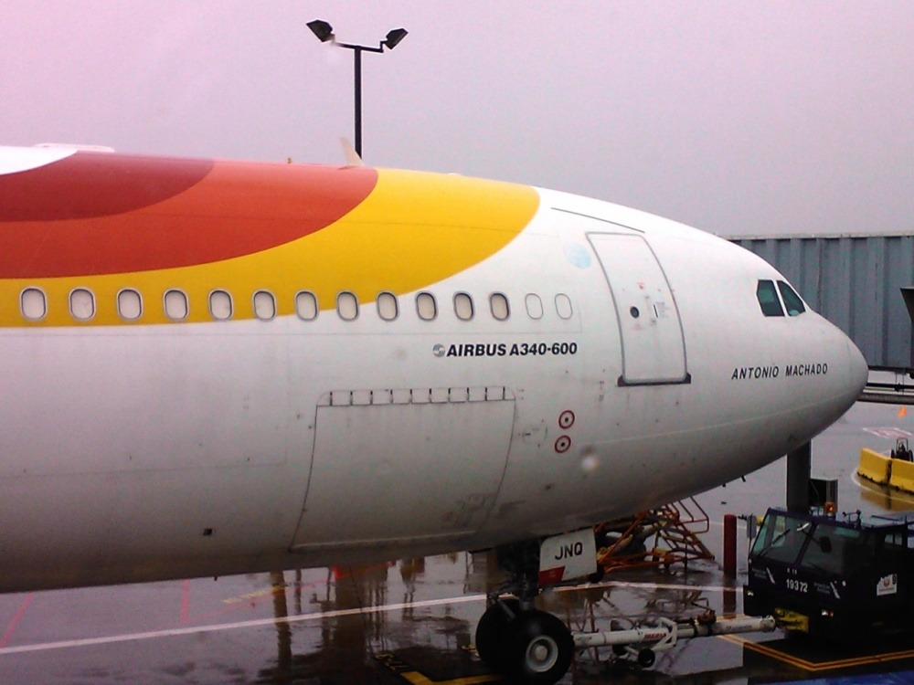 While I don't like most Airbus twin aisle products, I like the Airbus 340 a lot. Earlier versions were smaller -200 and -300 series. The last version is a -600 series. I believe they were released in 1993 or 1995. It's a great set-up ... 2-4-2 seating in steerage, and 4 engines. The smaller engines on the -200 and -300 look just right. I have flown on those via Lufthansa. I saw one darting around FRA airport and the upward sweep of the wing from behind is beautiful. As for the -600 series, it was a flight on Iberia. The -600 engines are massive and have a lot of thrust. These -600s barrel down the runway and rotate very quickly with a full house aboard. The Airbus 340s are considered gas hogs, hence the twin engine Airbus 330. Same thing as the Airbus 340 inside, more or less, but with two engines. - - - - - Iberia Airbus 340-600 outbound - boarded via a connection at Chicago O'Hare Iberia Airbus 340-600 outbound - early arrival in Madrid at dawn - look at those engines! Iberia Airbus 340-300 return - Madrid - these are the smaller engines on an older bird Iberia Airbus 340-300 return - Madrid - boarding via bus and stairs; notice how hot and dry it is outside Iberia Airbus 340-300 return - I'm almost sure this is right over Las Vegas McCarran, since LAX would only take 30 more minutes and the runway layout looks familiar and like the one on the city map. Iberia Airbus 340-300 return - in an unlikely place ... over the California desert Iberia Airbus 340-300 return - a window seat view on the San Gabriels, with LAX in about 15 minutes Iberia Airbus 340-300 return - DTLA to the left, as the flaps start doing their job to land the plane Iberia Airbus 340-300 return - on the ground at LAX over 11 hours later (I think Iberia has retired the -200s and -300s ... not sure.)