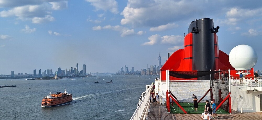 In a happy place ... for me, anyway ... ... with Lower Manhattan and the Statue of Liberty beyond and a Staten Island Ferry that was at the ship's side for a while on the way out to sea.