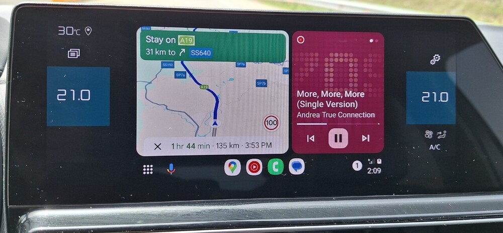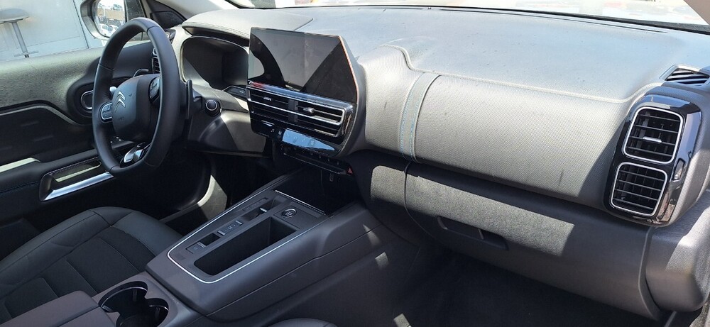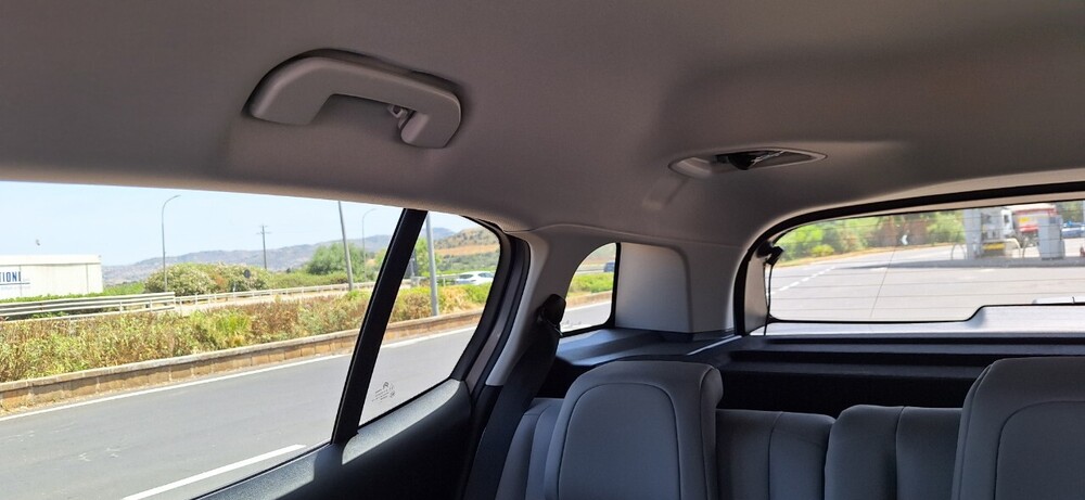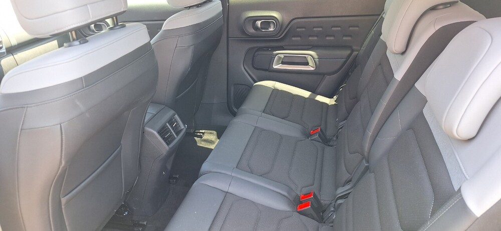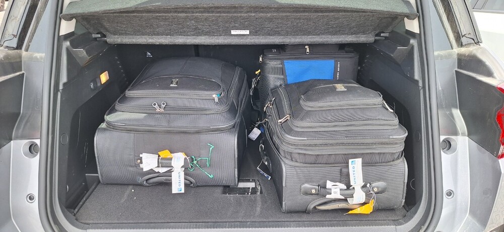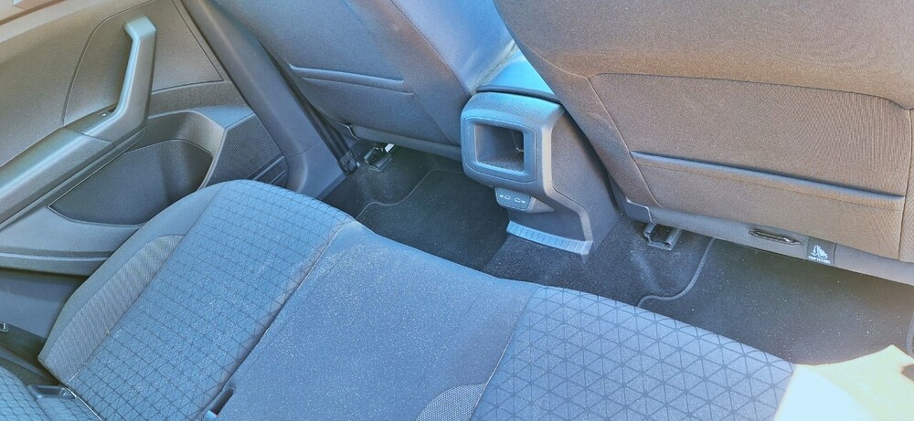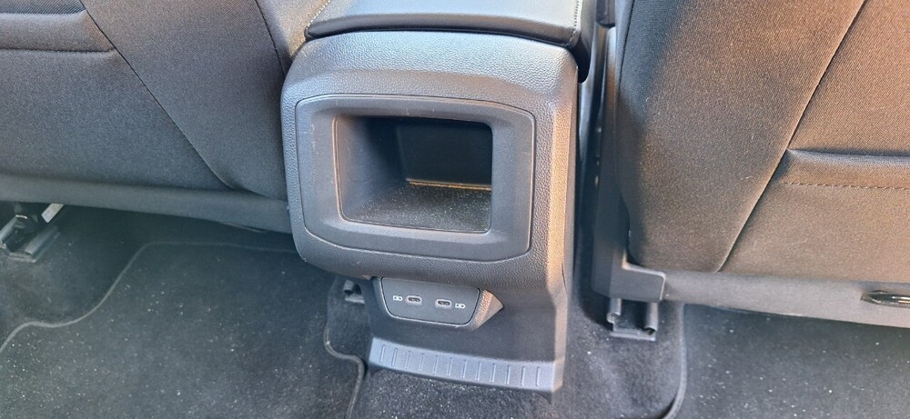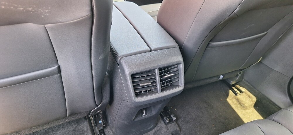 INTERIOR PHOTOS This is the view upon getting into the car - very comfortable seating, slightly high console deck, clamshell console box, and tasteful dash finishes As seen from the passenger side, the console's different command functions (gear selector, parking brake, drive mode, and push button start) are really nicely put together and easy to use - possibly the best I've seen so far in a European vehicle Full view of instrument panel - toggles on steering wheel not too fussy, nice assembly of A/C vents, touch screen appearance not to my liking although operation was fairly easy, and it looks like that USB port, if I recall, is the one that best "talks" to Android Auto They did the last "opera window," or window in the last pillar, just right for visibility Rear seat room is appropriate, not to mention that it features pleasing assembly Rear seat ducts and USB port Rear storage are (covered) and I rarely see 3 split seats like there is here Luggage now stowed in rear storage area, with some room left for more items