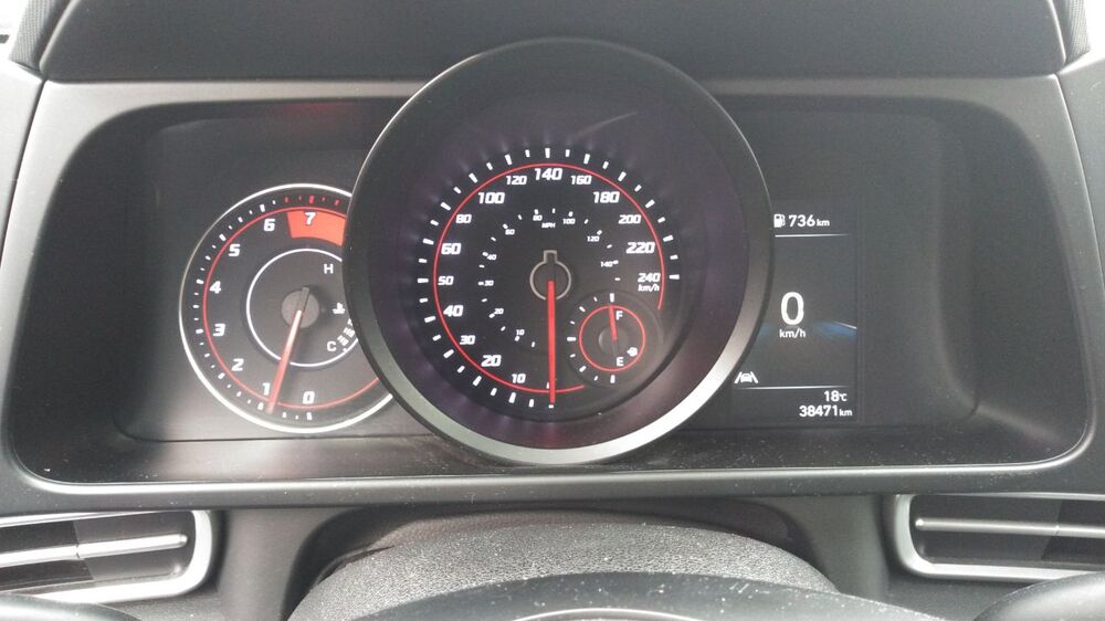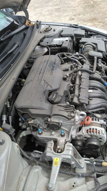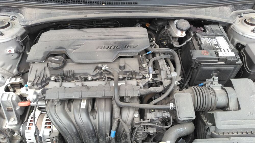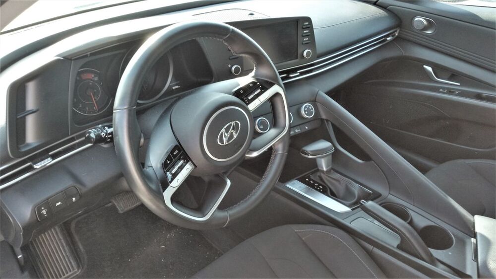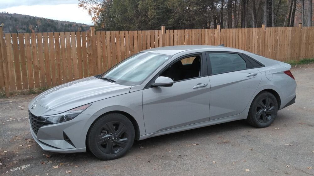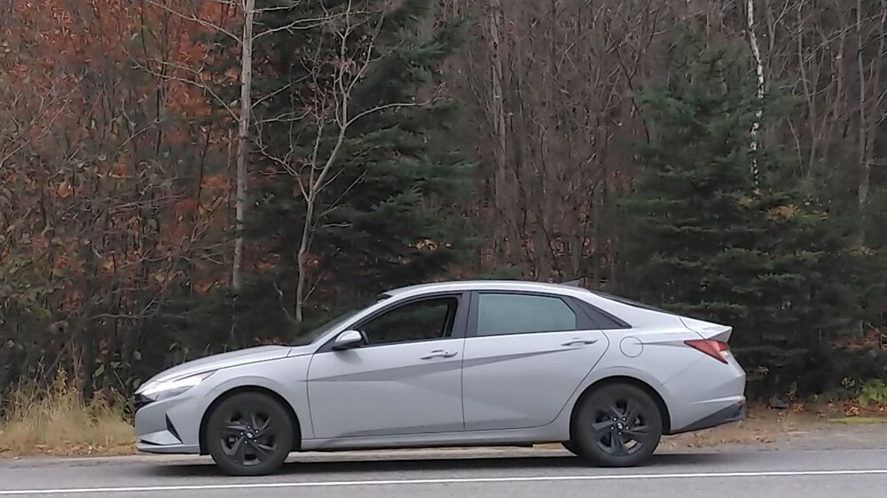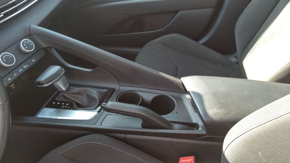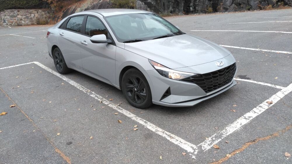 PHOTO GALLERY Exterior Side view of the latest Hyundai Elantra Angled front view of the Elantra, showing the new blacked-out latticework in the grille This new gray color is sort of interesting, but I don't care for the blacked out alloy wheels, though the design itself is appealing This is the side sculpting and character lines found in the latest model This is the blacked-out applique in the rear pillar or sail panel that hinders visibility to a slight degree and, once closer to it, the little horizontal lines look sophomoric Interior This is the sweep of the dash and the front seating area in the cabin; the continuation of the horizontal band that has the air conditioning vents is somewhat attractive I'm not a fan of that diagonal grab bar. It would make it difficult to climb over to the other side. I've had to do that a time or two in my current GM sedan, but my console surface is quite a bit lower I do not care for this IP cluster that looks more suited to an economy car ... note that the temperature gauge at the left is confusing in that it uses bars, but I do like the digital readout of the speed, as well as odometer, trip odometer, and outside temperature in the same area. I have a mixed opinion of this infotainment center. Being able to put your hand behind it makes it feel cheap and that same feeling applies to the left extension (with nothing in it) at the left side of the center IP cluster The climate control center is fairly easy to use, as are the attachment areas beneath it Just a dumb joke here: if you have the heated seats only turned up halfway, would that imply that you're "half-assed?" The trunk is fairly tall; however, note that there is no split folding rear seat, as many cars of this genre tend to have ... perhaps it was the trim level of this particular Elantra that dictated that The trunk is also deep and they did a good job with utilizing space within this mid-size car's silhouette Mechanical In the engine bay, it seems that most things are accessible, thus easy for the owner to check fluids or change a few items ... or for a mechanic to do so. That battery will also be easy to change. (Take care of it and it will take care of you.) Thankfully, this is a 2.0 liter DOHC 4 cylinder engine ... a displacement that has been around for decades across so many brands, which works out to about 120 cubic inches in "old school" talk. Take note that no turbocharger is used. However, rather than have a geared automatic transmission like the outgoing model, the "Smartstream" inscription on the engine cover is Hyundai's branding for their CVT, and this vehicle had a CVT. It looks like you could replace an air filter and access the throttle body somewhat easily This is a side/longitudinal view of the engine compartment showing the accessory drive belt and an easily serviceable alternator - - - - - End of photos -