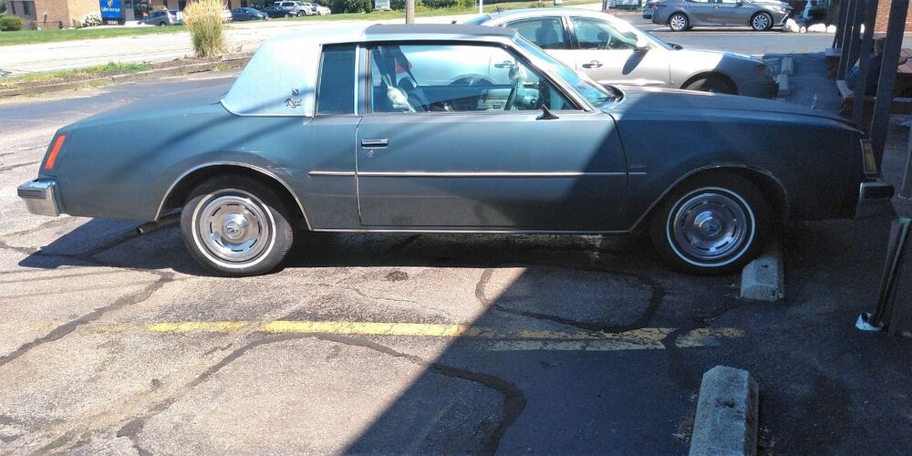 Spotted on August 17 After fasting and getting my blood drawn at a nearby suburban medical complex, I always head here for a donut and a cup of coffe. I walked out and saw this ... and reached for my phone camera. This was the downsized base Buick Regal coupe, after the first generation of GM colonnades (1973-1977). The wheel covers and simpler trim indicated it was not the more finished Limited, which would have had plump seats and more chrome trim outside. The engine badging says 3.8 liter, and this would have been the first year for the much improved "even firing" crankshaft modification that GM kept supplying in this V6 for almost another 10 years. The paint might be faded but the body is in great shape. It was air conditioned, but had manual windows and no gauge package. The owner walked out of the bakery shortly afterwards and said it was her father's car, it was garaged, and had a little over 50,000 miles. She was really nice and liked talking about her car. People know when you're not a "creeper" because you obviously know the car they are driving and its details fairly well. As she drove off, she honked and waved.