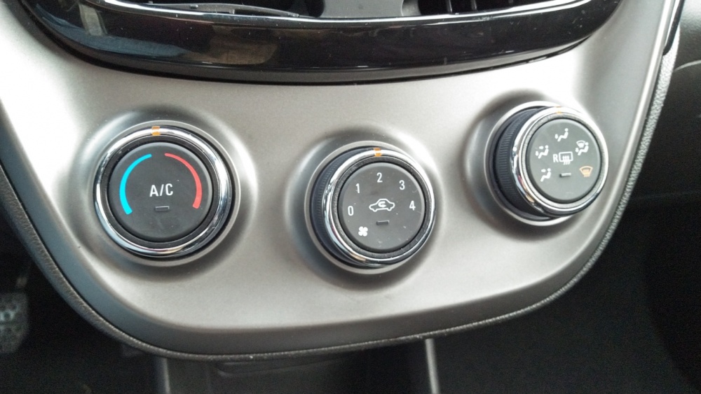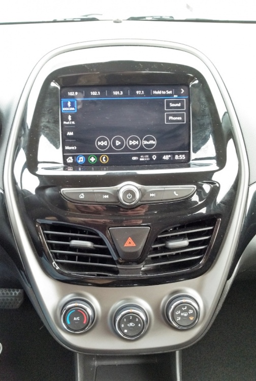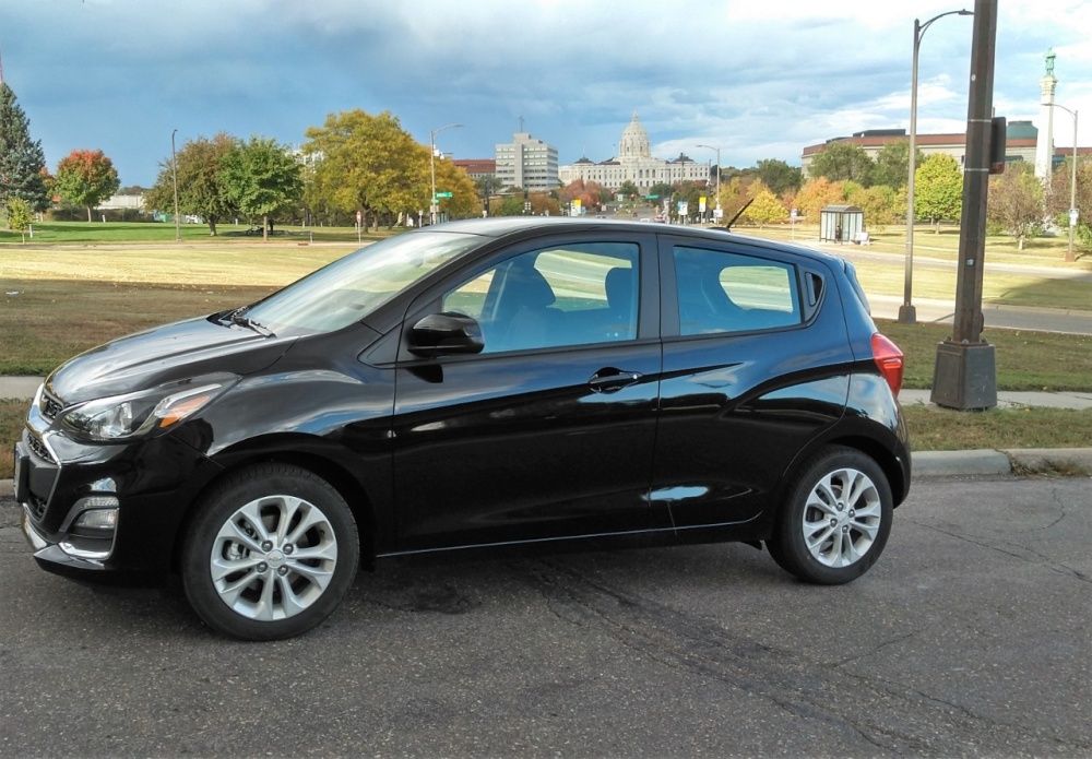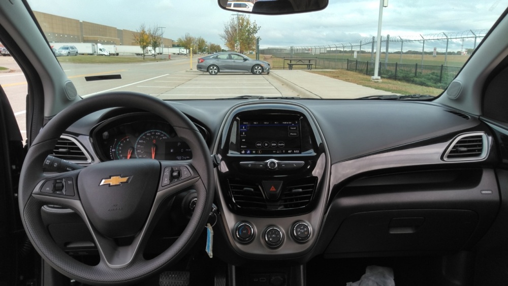 Photo Gallery EXTERIOR View of the Spark with the Minnesota State Capitol in the background View of the Spark at the MSP viewing area - this unit had alloy wheels, but many do not Doesn't this take one back to the door handle for W-body coupes from 1988 to 1996? This is how the rear door handles are set up. The Spark is not very wide INTERIOR Overall view of the dashboard Angled view of dashboard, console, and gear selector Spark main instrument cluster - (from left to right) fuel gauge, tach, speedo, and info box, with warning lights for other functions This is the center stack; the vents are slightly low if air conditioning was being sought Here are the ubiquitous GM climate control dials, be it for this Spark or their upline vehicles. Maybe making so many of them and putting them into so many cars makes them more reliable? Here is the typical GM hardware for power windows, power door locks, and power adjustable outside mirrors This system of having both a shelf and a glove box is useful Cloth seating is black is standard in the Spark; this vehicle had an armrest, but note that there is no console with a storage bin This demonstrates rear legroom in this small 5-door hatchback and a trippy cup holder and other recessed area between the seating spaces; the seats on this one were 60-40 and can fold down to augment trunk space While it's a little chunky, visibility was adequate, partially because of the more upright rear back lite ... this is actually better than some rear pillars I've seen in many late model cars The trunk is on the smaller side and has the much needed cover. Suitcases can be put in on their sides to maximize space. Again, here you see the 60-40 split of the rear seats. GM got this right, and I like having that slot to insert one's hand to bring down the trunk or hatch door. It's even included on this entry level car. MECHANICAL We've known the Ecotec branding of (4 cylinder) GM engines for about 2 decades plus, if I'm not mistaken GM engine compartments are among the more cleanly and clearly laid out ones and, of course, a shroud over the top of the spark plugs and the manifold and intake area helps make them look that way - - - - - END OF PHOTOS