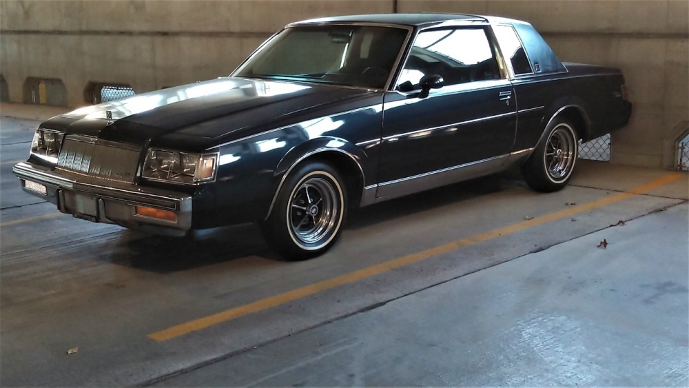 Spotted November 8 You crawl up and up in a parking deck and you find more parking spaces. You also find nicer or more interesting cars their owners chose to park there. This one was quite the sighting ... it had temporary tags and, after wondering what year it was, it turned out to be a 1986 in stunning condition. Proud looking Regal Limited coupe ... any millennial driving by wouldn't understand why'd I'd be photographing it Less is more with the simple Buick alloys - they did the trick without being overpowering. Of the quadruplets, the Cutlass Supreme took first place from 1981 through 1987, with the Regal and the Grand Prix probably tied for second. It's in perfect condition ... look at how the landau top meets the sheet metal A Limited model with manual windows! Buick went with a tic-tac-toe set of squares for their bezels in the IP. My dad had an earlier '80s model sedan, also in Limited form, and it's a nice cabin environment. This one is air conditioned. We will never again see tufted velour seating in upline American cars. Or, maybe things do come full circle. This is taken from the rear of the notchback styled window treatment. While this wouldn't "make" Clint Eastwood's day, seeing this near perfect Regal Limited coupe from an era gone by sort of made my day that day. -