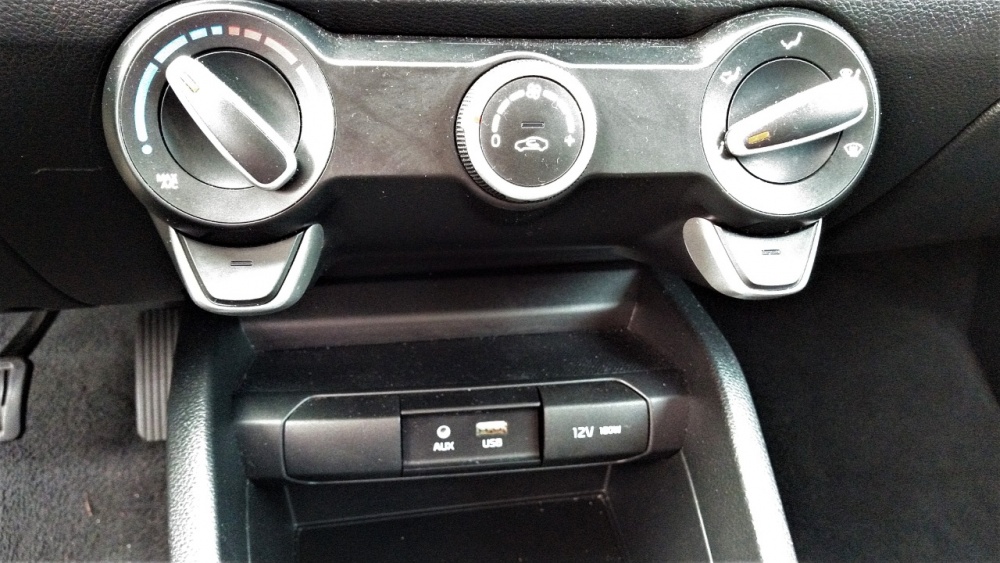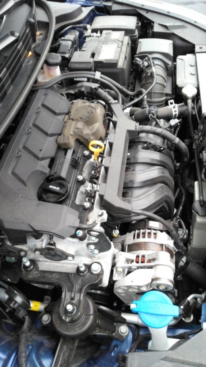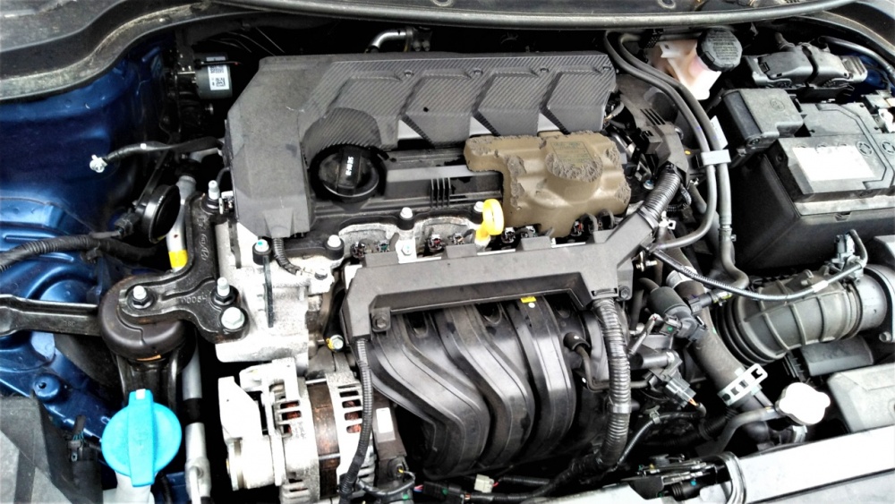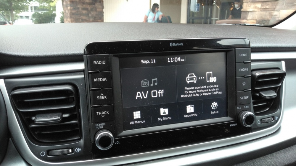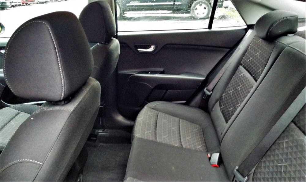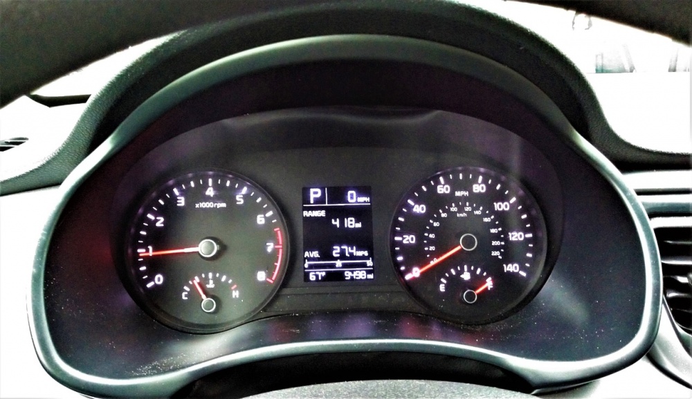 PHOTO GALLERY EXTERIOR The silhouette of the 2020 Kia Rio S sedan Rear 3/4 view of the car View of the front lights, grille, and more pronounced bumper strip than in the related Hyundai Accent Even with the one-up S model, metal wheel covers are what comes with this car, as do Continental brand tires, and alloy wheels are not available INTERIOR General view of the front part of the passenger cabin and steering wheel with controls ... note the armrest and storage bin between the seats The main instrument pod has two main bezels, both a fuel gauge and a temperature gauge, and a logical square info center with the most important things - gear selected, mph, temperature, odometer, and range/mpg (this was upon picking it up, but mileage I got was far higher than 27.4 mpg shown here) Infotainment center screen - mostly engaged with the dash (protrudes slightly at the top) (sidebar: is that a Karen Pence-alike, seen above the dashboard?) Simple and easy to use climate controls, with ports and a lighter behind the flap that says 12 V Front seats were more supportive than most for this economy compact segment, but larger cars obviously offer more comfortable seats for longer trips Rear seat leg room depends on the seat adjustment of the front seats, but it is sufficient for average sized passengers The visibility toward the rear is very good The center gear shift lever is straightforward. There are economy and sport modes for the car that are selected by buttons on this pod. Kudos for easy to pull release tabs for the trunk and the fuel door MECHANICAL This is the 1.6 4 cylinder that Kia (and Hyundai) use(s) a lot; that beige rubber gromeet appears to buffer the top of the engine from the hood Things are logically laid out and accessible: windshield washer fluid, oil dipstick, brake master cylinder, battery, and fuse box (from front to back of this sideways photo); the air filter looks like it might be easy to replace up by that snorkel The engine is a 16 valve DOHC unit with VVT and, most likely, GDI (that does not mean G-d Damn Independent, or Gamma Delta Iota to some, meaning you did not partake in the collegiate Greek system, though, upon looking it up, it is an actual Greek organization founded in 1974 at Purdue University) - - - - - END OF PHOTOS -