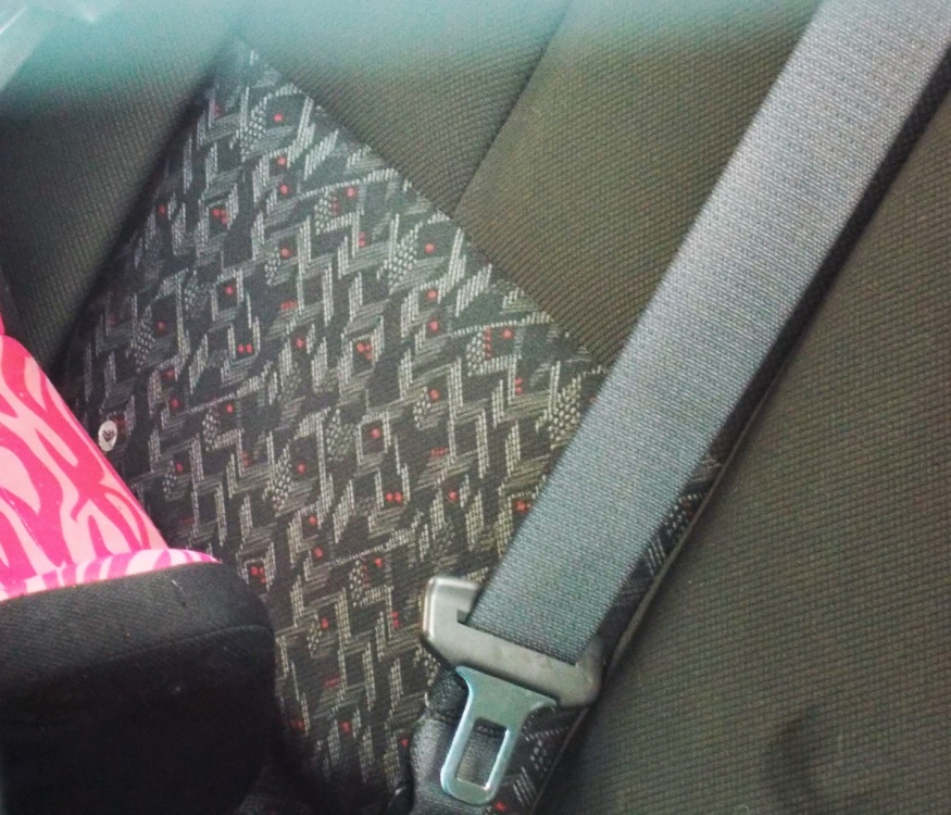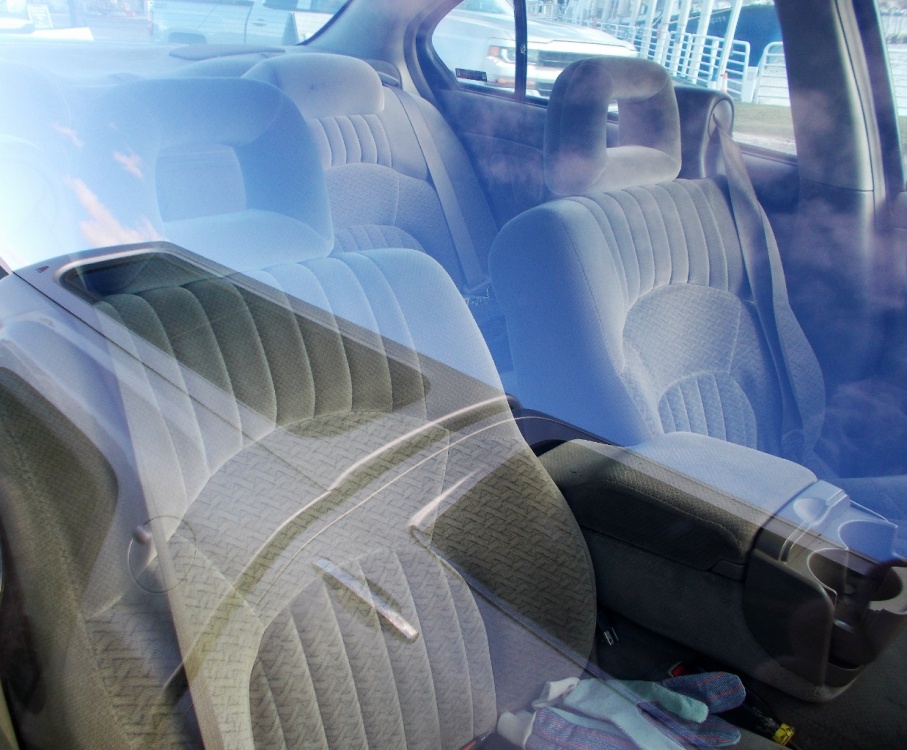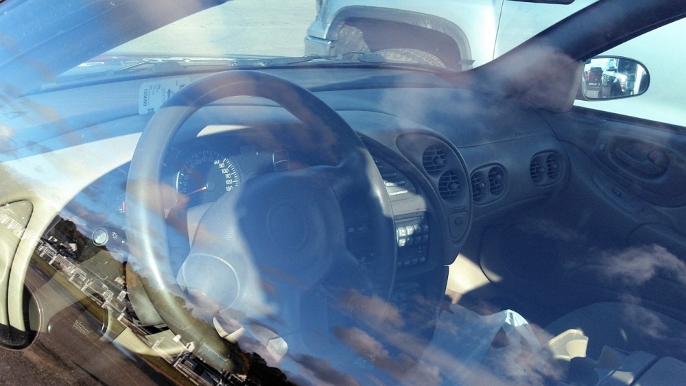 October 4 - special purpose post - yeah, right ... I suppose it's weird to point your phone camera into a parked car's interior. Here you have a photo of the interior of a parked 2004 Grand Prix. I remember that I had reentered the market to purchase at that time and liked these GPs, especially their "wraparound" dash and console. That very first year, and maybe into the second year, their cloth interior was bizarre (see photo). This is what you'd see in an econobox by Renault, Fiat, etc. overseas. It was almost like backpack material. It would probably last forever, though. They changed it to a normal cloth interior in subsequent years. I don't know if they were trying to appear European ... or go on the cheap.