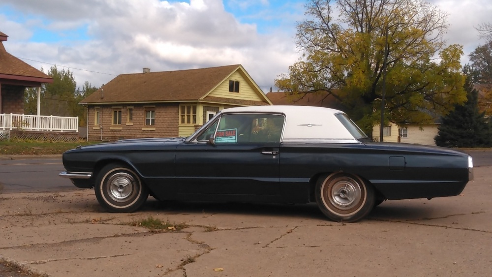"Ten - four." This would mean October, 4 spotting in this case: Wow, this T-bird is a blast from the past. One of our neighbors when I was a kid, a Mexican lady who would give my mom a ride to church with her, had one of these, or maybe a slightly later version. It had the sequential blinking turn signals in the back, as did the more svelte Mercury Cougars of a few years later, as well as a steering wheel that tilted away, in a diagonal direction. Don't know the year of this one. It was for sale. Don't know how much they were asking ... not really a FoMoCo buyer.