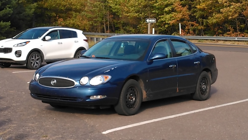 October 5 - when it rains, it pours ... W-bodies: By the color, I'm going to say 2007. I had this same car/color in Montreal as a rental. That's just dirt I see. Amazing that there's no visible rust. No comment about the other stuff I could comment on. A cobbled together Intrigue ... I'm going to say '98 or '99, or are those alloys from 2000 and beyond? It's hard to tell without looking at the rear fascia. A LaX at a pull out overlooking the lake and a sandy beach ... beautiful view (of the lake and the beach). This was a rough 2005 or 2006. Apparently, these things keep going and going, given the harsh conditions.