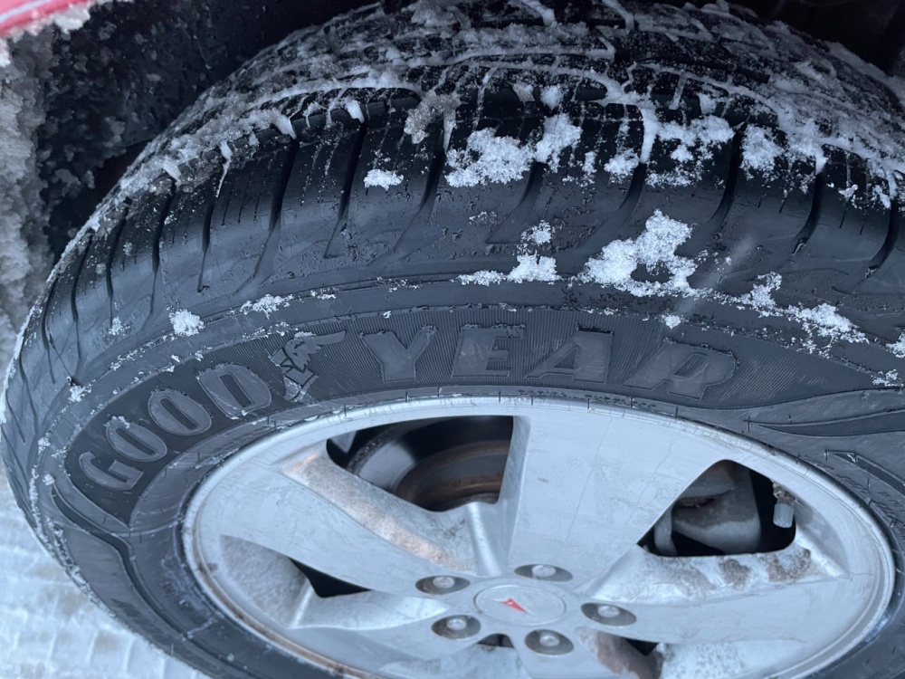 Well, turns out grandpa’s tires were a combo platter of mismatched brands and a front tire that had gone rogue inside to make the car pull badly. Grandpa always bought cheap tires that were recommended by the tire store and then didn’t rotate often, etc. With the pulling and tire noise and horrible winter traction we upped for a new set of four tires. Goodyear WeatherReady “all weather”. I like snow tires but who knows how long we will have this car. So, the idea of year round tires was more appealing. Normally I avoid Goodyear’s like the plague (yes you will be able to get one good year out of them) but I read enough good reviews from articles and actual owners that I figured I would give them a go. 20 feet with the new tires and it was evident the huge improvement. The old tires still had half tread. The drive home was amazing in comparison. Actual ability to steer and stop. Wow. We’ll have to see if these stay good over time. -