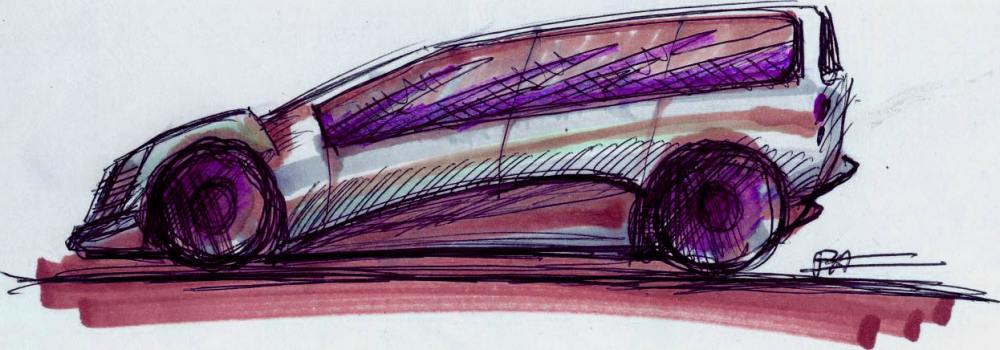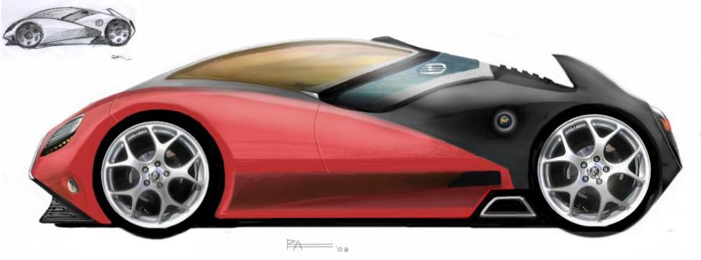 1. Ok here is my entry, original sketch & render...may get another view done before the deadline tho....an electric sports car,...Pontiac Cheetah :