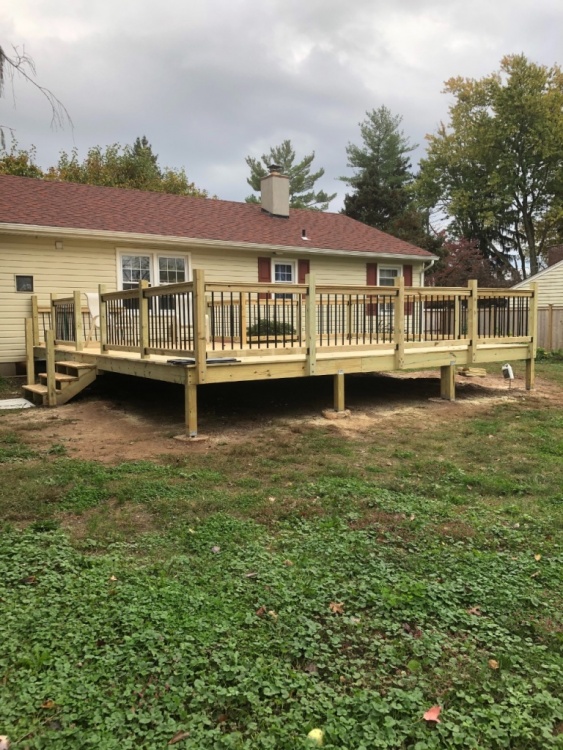 Finished railings... except at house. Replacing double window with slider door. Except for concrete; the entire deck’s materials were transported in my 2500 HD.