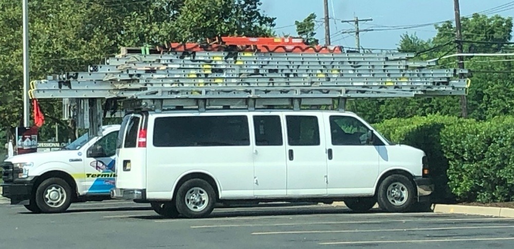 I dunno; I think they could've gotten one more ladder up there ~ Plus this clean '70s F-100 / 150 a few doors down from a job I'm doing ~