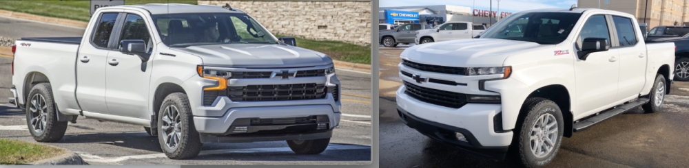 Stolen brazenly from the inter web~ I don't know what trim level this '22 is (on the left), but it's horrific, IMO. I've liked the '19-21 Silverados all along, but whatever this is comes off as a Chinese copy, to my eye. Yikes.