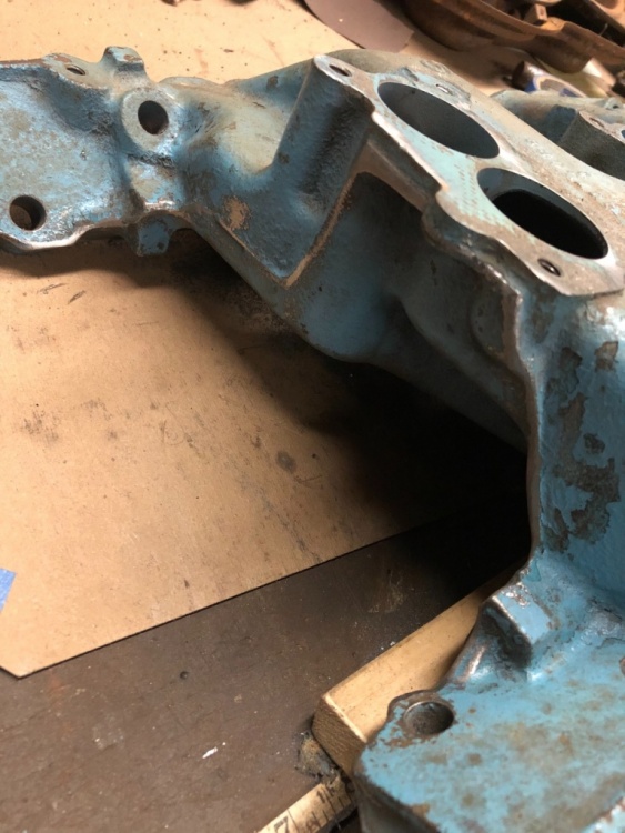 Carbs are boxed and going to rebuilder tomm. Tri-P manifold has had all threads chased, all edges broken and all casting flash ground smooth. I wish this were aluminum, but only the factory race pieces were (big $$). Cast iron here, weighs 46 lbs.