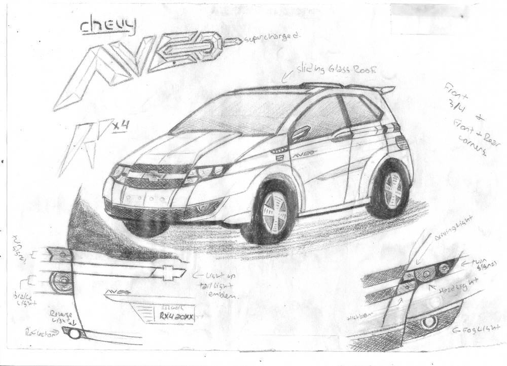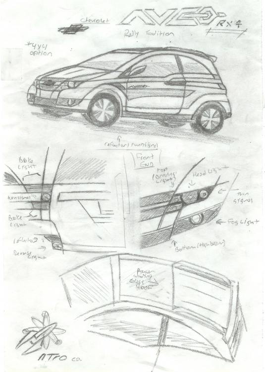 6. this is my first attempt to post a concept car sketch for a contest. a few things to better explain whats going on here: -the top of the rx4 aveo is a power-sliding glass roof. that will slide into the back portion of the roof. -available options will include: 3-door hatchback -or- quad-coupe hatchback rear driver and passenger windows will open. -it will also have the option of either 2 wheel drive or all wheel drive. the all new rally inspired chevrolet aveo RX4 link to a better view of the car. http://bp3.blogger.com/_9rJlqf6QVDM/Ro87R6...s1600/Jason.jpg