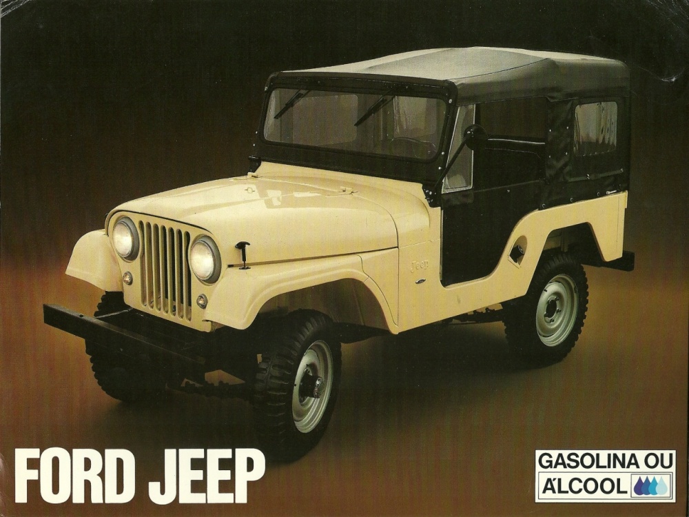 Ford Brazil bought Willys Brazil in the late 60s. In the early 80s they were building CJ-5s w/ the Ford 2.3 Lima 4cyl. Built them through 1983. I knew about the Willys Jeep wagon-based Ford Rural, but not this..learn something every day. Note the tiny Ford blue oval emblem below the stamped Jeep badge on the body.