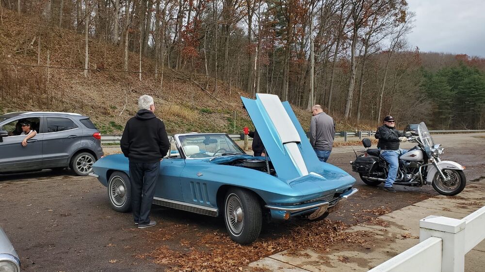 3. Took a drive down south past Tappan Lake and over to Steubenville for some of my favorite childhood food, then back home. Beautiful 70 degree weather, though most of the trees down there have lost their leaves. Saw these two vintage Corvettes at a rest area at the lake..chatted briefly w/ the owners.. a '60 and '66. On the way home last night got passed by a dark red Lamborghini Huracan followed closely by a dark blue Ferrari 488 Itala.