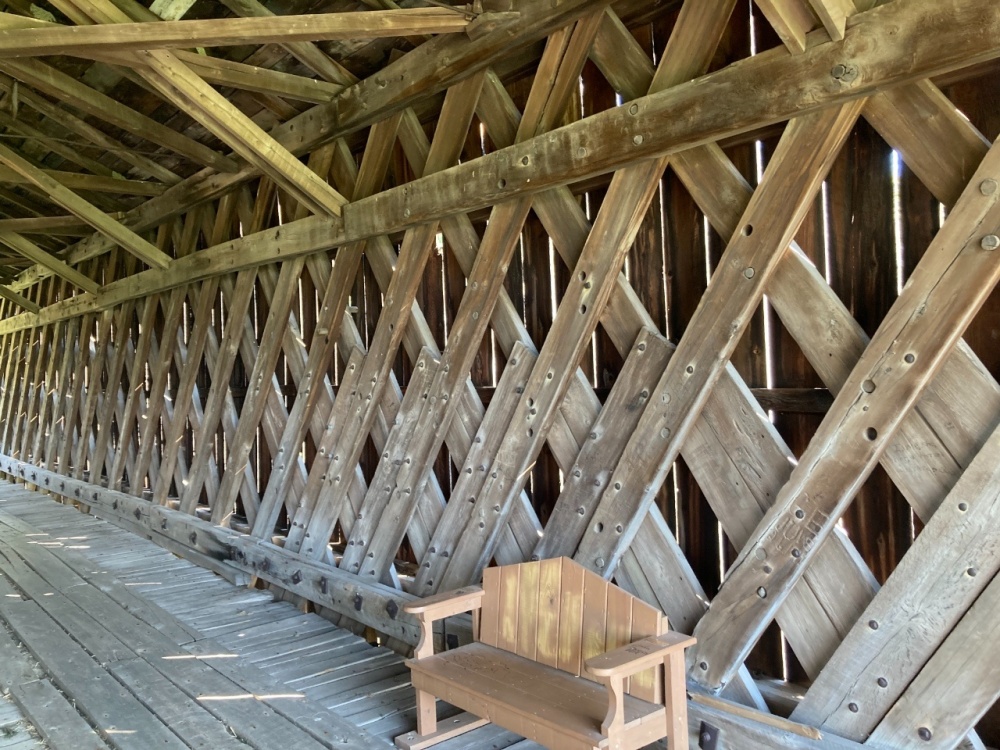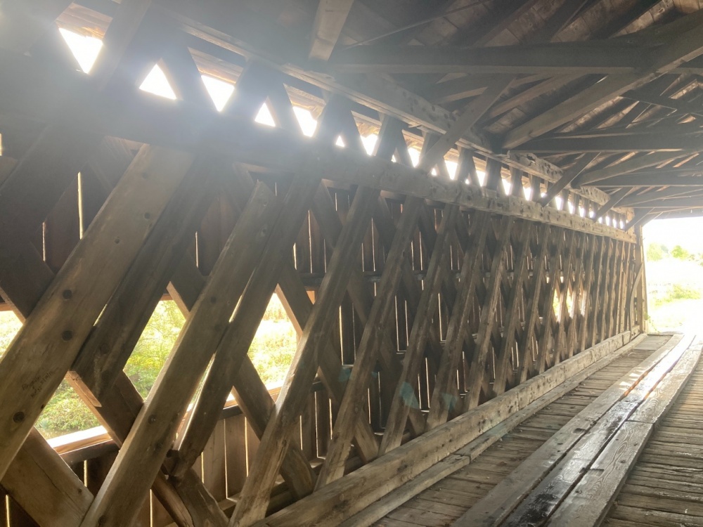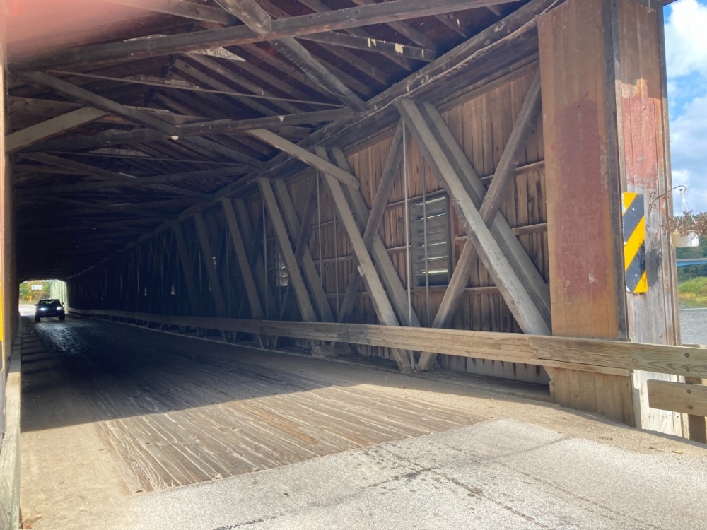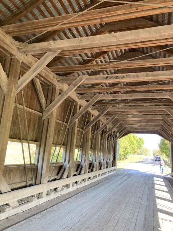 Between Sat and Sun I saw 11 or 12…Ashtabula County has 19, over 100 across Ohio. I did see a red one and a short one (18 ft span). The woodwork inside this bridge reminded me of a leaf spring upside down. I think @A Horse With No Namewould appreciate the craftsmanship of these bridges.