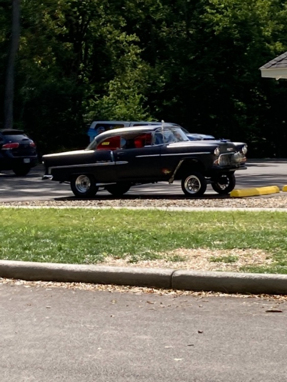 ‘55 Chevy in the parking lot at Marblehead Lighthouse on Lake Erie. Also saw a sharp purple '57 Bel Air 2dr ht on the road, a gorgeous red '64 Bonneville convertible top down rolling along, a white w/ blue stripes '04-05 Ford GT, and a very clean red w/ red interior '87-89 Mustang GT convertible.