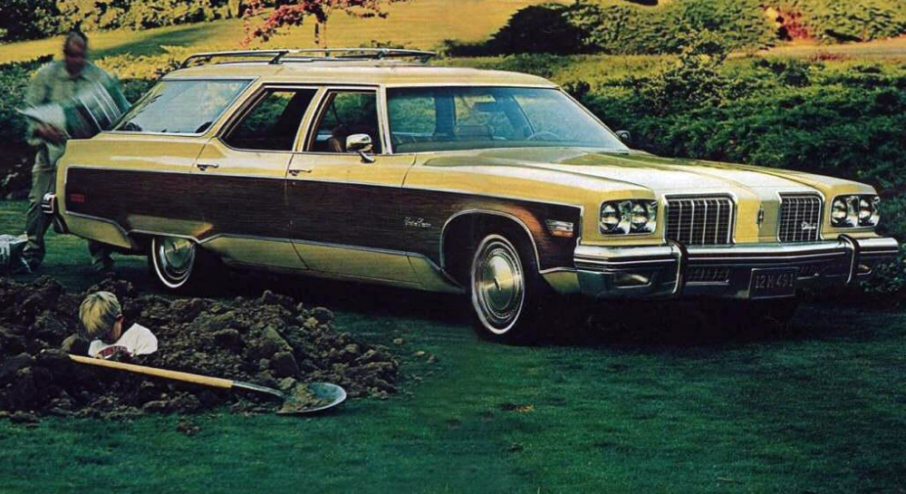 Those '70s clam shell wagons were something else... what beasts. A neighbor at my family farm had a '71 Brookwood that was quite the beater, a farm wagon...he drove it until he died in 1987 at age 82. And in Steubenville, the parents of one of my classmates from kindergarten through 2nd grade had a '74 Olds Custom Cruiser...I remember riding in it as a kid. Something like this..