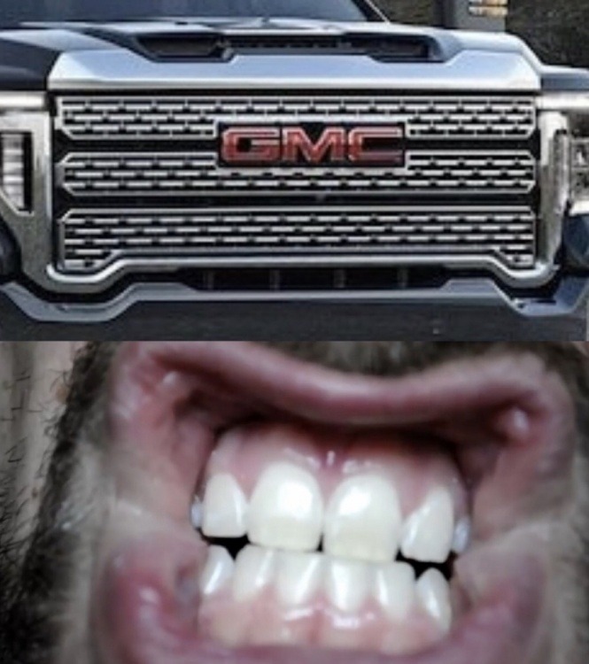 Does a handkerchief come standard in the glovebox with these trucks? A roll of paper towels, at least? Because this truck is gonna drool more than a St. Bernard if it insists on angrily gritting its teeth like that. -