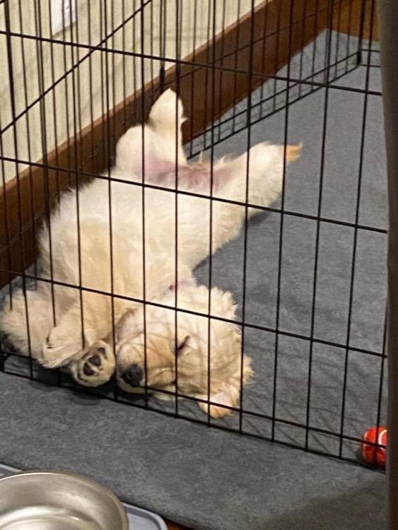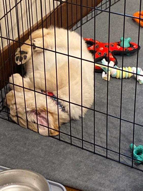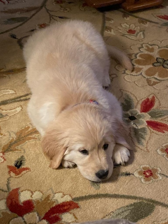 Will start this off, my sister and her partner got a pure bred golden. Will raise it and train it as a therapy dog. Everyone Meet Cora! Cora was luving on her sister. Cora's first ice cube. 44621.3gp Cora with her brothers and sisters. 41693.3gp