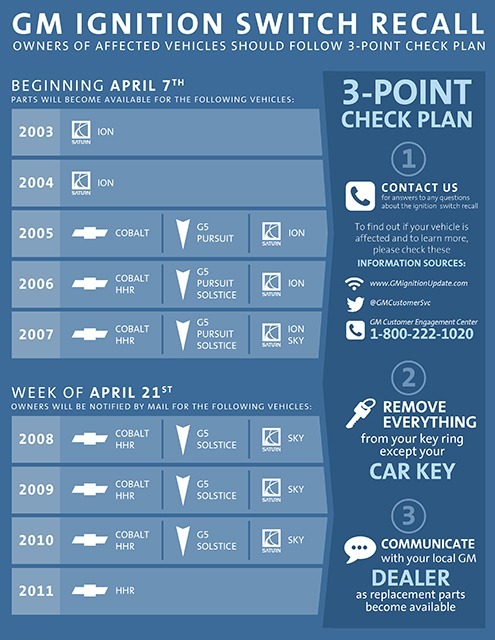 Last night, General Motors announced that the ignition switch has been expanded to include an additional 824,000 vehicles. The vehicles include, 2008-2010 Chevrolet Cobalt 2008-2011 Chevrolet HHR 2008-2010 Pontiac G5 2008-2010 Pontiac Solstice 2008-2010 Saturn Sky This brings the total number of vehicles involved in the recall to over 2.6 million vehicles. Like the previous recalls, GM is urging owners to remove all of their keys except the ignition key to prevent the switch from moving. GM said replacement parts will begin arriving at dealers starting on April 7th. "We are taking no chances with safety. Trying to locate several thousand switches in a population of 2.2 million vehicles and distributed to thousands of retailers isn't practical. Out of an abundance of caution, we are recalling the rest of the model years," said GM CEO Mary Barra in a statement. This isn't the only problem GM is going through at the moment. Reuters reports that repair shops can buy the ignition switch from Delphi involved in the recall. While the switches may not be defective thanks to a fix in 2007 which replaced the tenser spring, the only way to be sure is to either take it apart or check the manufacturing history. This is due to GM keeping the part number the same on the new part, a bit surprising to those who are in the know. "When you make a change, you change the part number so everybody understands what happened," said a former GM executive to Reuters. GM Spokesman Jim Cain said they company is looking into this matter. "We are in the process of responding to the very questions you are asking, per our pledge to be fully cooperative with NHTSA," said Cain. Source: General Motors, Reuters William Maley is a staff writer for Cheers & Gears. He can be reached at [email protected] you can follow him on twitter at @realmudmonster. Press Release is on Page 2 GM Moves to Secure Recalled Ignition Switches 2014-03-28 824,000 models sold in the U.S. from 2008-2011 will get new ignition switch Parts return sought from aftermarket distributors DETROIT – General Motors today said it will replace the ignition switch in all model years of its Chevrolet Cobalt, HHR, Pontiac G5, Solstice and Saturn Ion and Sky in the U.S. since faulty switches may have been used to repair the vehicles. The parts are at the center of the company's recently announced ignition switch recall, which originally extended through the 2007 model year. About 95,000 faulty switches were sold to dealers and aftermarket wholesalers. Of those, about 90,000 were used to repair older vehicles that were repaired before they were recalled in February. Because it is not feasible to track down all the parts, the company is taking the extraordinary step of recalling 824,000 more vehicles in the U.S. to ensure that every car has a current ignition switch. GM is unaware of any reports of fatalities with this group of vehicles where a frontal impact occurred, the front air bags did not deploy and the ignition is in the "accessory" or "off" position. As with the earlier recalls, if the torque performance is not to GM specification, the ignition switch may unintentionally move from the "run" position to the "accessory" or "off" positions, leading to a loss of power. The risk may be increased if the key ring is carrying added weight or if the vehicle goes off road or experiences some jarring event. The timing of the key movement out of the "run" position relative to when the sensing algorithm of a crash may result in the air bags not deploying, increasing the potential for occupant injury in certain kinds of crashes. Until the recall has been performed, customers are urged to remove all items, including the key fob, from their key rings, leaving only the vehicle key. "We are taking no chances with safety," said GM CEO Mary Barra. "Trying to locate several thousand switches in a population of 2.2 million vehicles and distributed to thousands of retailers isn't practical. Out of an abundance of caution, we are recalling the rest of the model years. "We are going to provide our customers with the peace of mind they deserve and expect by getting the new switches into all the vehicles," Barra said. GM records indicate the service parts may have been used for ignition repairs in: 2008-2010 Chevrolet Cobalts 2008-2011 Chevrolet HHRs 2008-2010 Pontiac Solstice 2008-2010 Pontiac G5 and 2008-2010 Saturn Sky Owners who may have had a suspect part installed will receive a letter the week of April 21. GM dealers will replace their ignition switch free of charge as parts become available. Customers who paid to have their ignition switches replaced will be eligible for reimbursement. Dealers, distributors and other parts customers will be told about the recall beginning March 31. Information on the ignition switch recall is available www.gmignitionupdate.com.